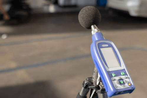 환경 측정 작업장 특정 지점에서 소음계를 이용하여 소음 강도를 측정