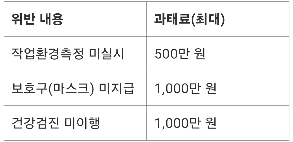 사업장은 근로자의 건강 보호를 위해 정기적으로 공기 질을 점검하고, 보호구 지급 및 건강검진을 철저히 시행해야 한다.